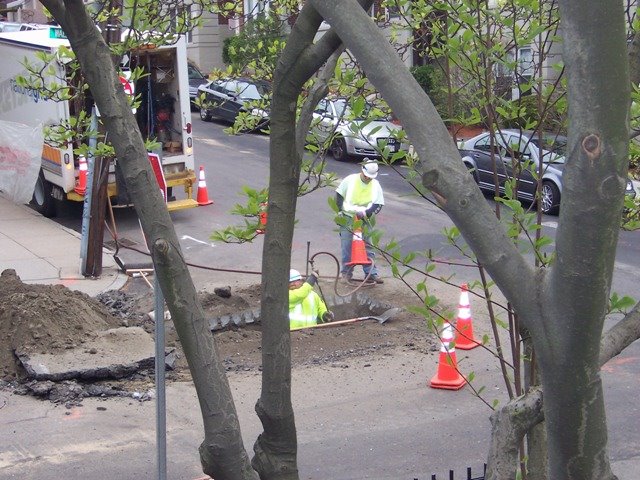 This is the view out our front window at 6:05 this Sunday evening. We are uncertain what would compel the Boston/Allston city construction crews to begin jackhammering at 3pm on a Sunday afternoon as we were attempting to grade student exams/write thesis drafts in a responsible graduate students sort of manner, but strongly suspect foul play.