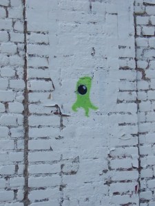 from the neighborhood: alien graffiti 15 Thursday Oct 2009 Posted by Anna Clutterbuck-Cook in a sense of place ≈ Leave a comment Tagsfrom the neighborhood, fun, photos I noticed this little guy painted on one of the walls near our apartment recently. He/she/it looks adorable which probably means he/she/it is about to rip out my throat. Share this: Click to share on X (Opens in new window) X Click to share on Facebook (Opens in new window) Facebook Like Loading...