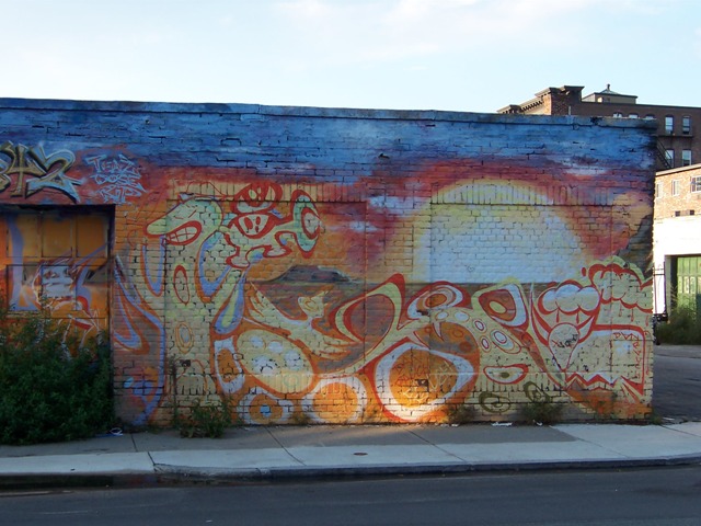 After this, I promise pictures of things other than graffiti for a while. But I just had to share this awesome wall of graffiti art outside the auto garage down the street from our apartment. It’s an ever-changing work of art, but the colors of this incarnation make me especially happy.