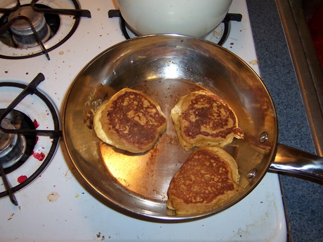 Wednesday is my thesis-writing day and so before Hanna and I take our morning constitutional and I drop her off at work before returning to craft eloquent sentences and pretentious footnotes, I get up and make pancakes. These particular pancakes are a recent find @ Joy the Baker and are awesome. Frankly, we can’t get enough of them.