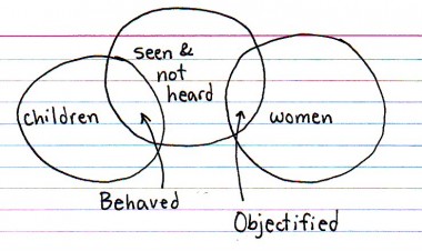 The overlaps read: childen + seen and not heard = behaved, and women + seen and not heard = objectified.