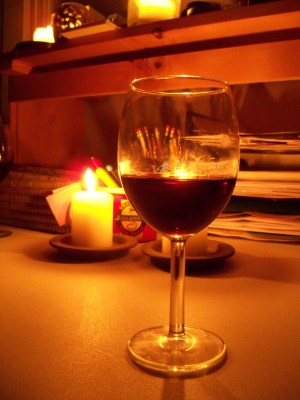 | Our power went out for several hours last night; luckily our stove is gas-powered so we could make supper anyway! (And enjoy pre-dinner wine.) |