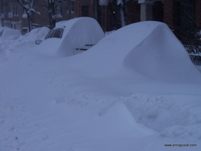 I promised photos to several people yesterday from the “snow emergency” here in Boston, so this morning while Hanna did yoga in the living room I tumbled into my boots and winter gear and re-learned how to hike through knee-high drifts in order to bring you some pictures from our snowy neighborhood.
