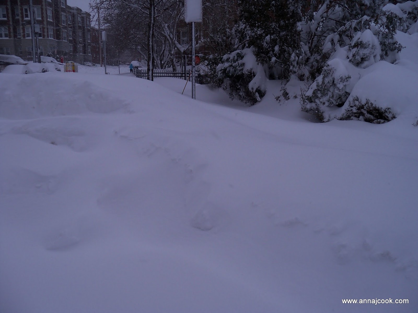 I promised photos to several people yesterday from the “snow emergency” here in Boston, so this morning while Hanna did yoga in the living room I tumbled into my boots and winter gear and re-learned how to hike through knee-high drifts in order to bring you some pictures from our snowy neighborhood.