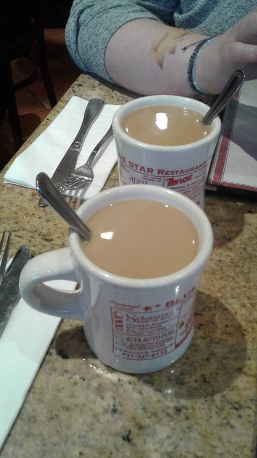 Coffee at the Blue Star diner, Roslindale Village, pre-pandemic.