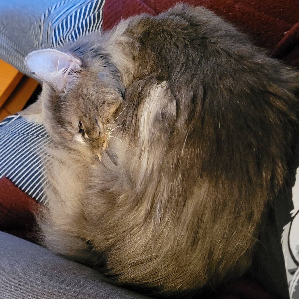 In a couple of other medical-adjacent updates, Hanna’s recovery from her own surgery continues smoothly and she has returned to work as of June 1st. Christopher has also seen an improvement in his health following a dental appointment at which he had eighteen (!!) teeth removed. As his mouth heals he seems much more comfortable and is even exploring the possibilities of human laps. Our household is on the collective mend.