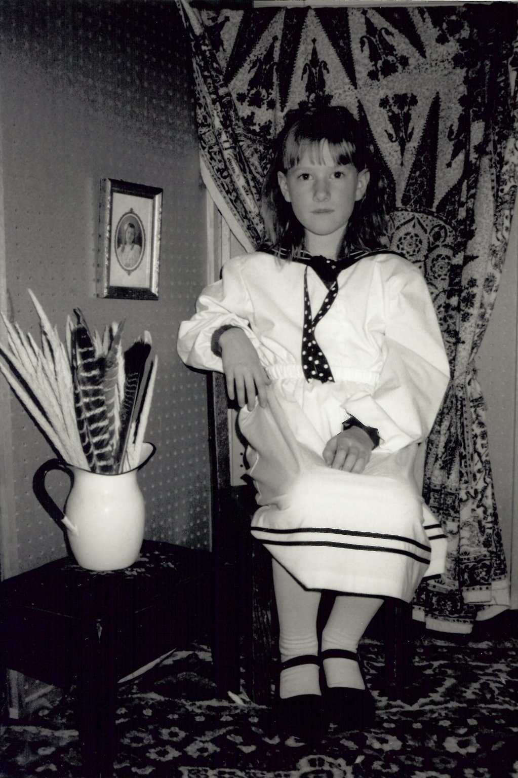 When I sent the blog post to my mother she responded by digging out these photographs, circa. 1988, when we created our own mock portrait studio and spent an afternoon posing for Edwardian-era black and white photographs.