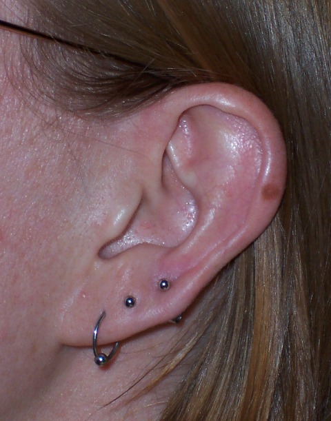 First, we have the personal beauty update: I got three new holes in my earlobes (first new piercings since I was thirteen and got dragged to the jewelery store by a friend for the original set). They’re nearly healed now, and I’m ready to go shopping for some hoops . . . but in the meantime, here’s the new look.