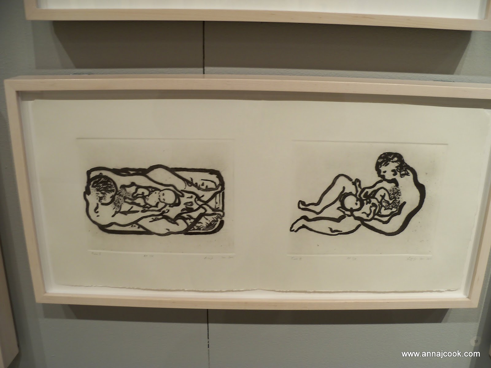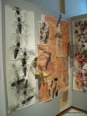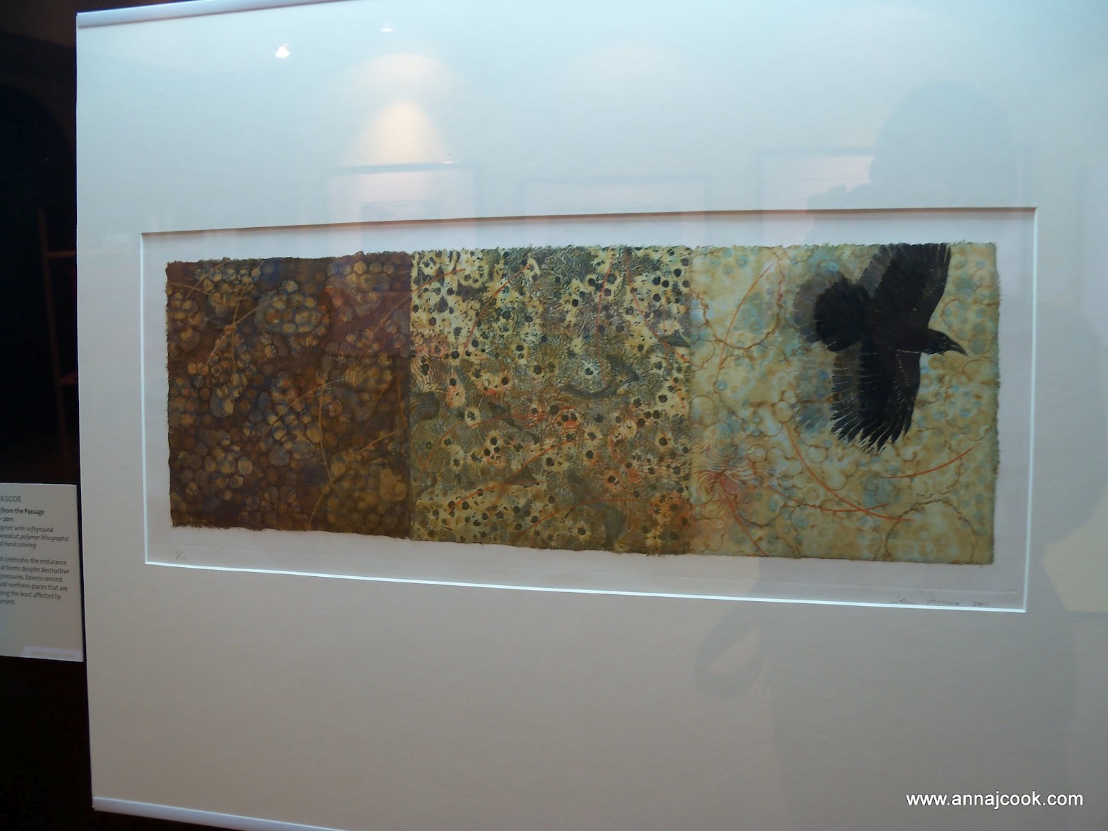 There were a lot of prints incorporating maps, architectural elements, and text. We also noticed a theme of arctic exploration. The photograph below is of an interactive piece featuring the upturned hull of a boat to which visitors are invited to tie slips of paper articulating wishes and dreams (our favorite: “I dream of Cthulhu” and also “I want a pig.” There were also a wonderfully wide variety of languages represented.