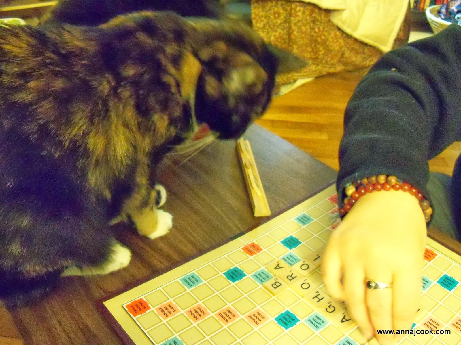 Last night, Hanna and I thought a game of Scrabble might be nice … and Teazle thought so as well!