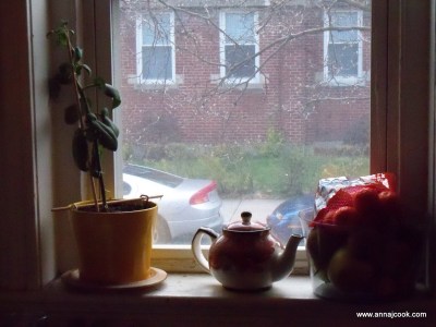 Making room for the fountain, despite its modest size, precipitated a major reorganization of the living room – a way of making the apartment few new and springy even though we’ve lived here nearly five years (and Hanna even longer).