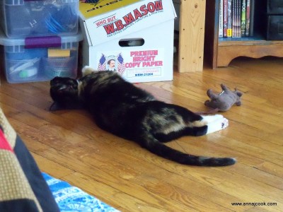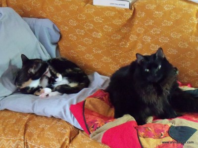 The cats continue to be unimpressed by us, though we have clearly been setting a poor example in the lewd cuddling department…