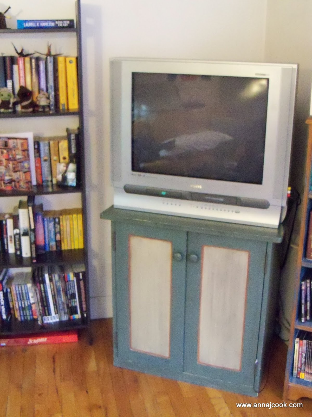 So with the help of the dolley, I got the rest of the way in under ten minutes. Hanna and I put together a bag of cookies for the kind stranger and I hauled the cart back again before we set up the television on its new, more stable, cabinet.